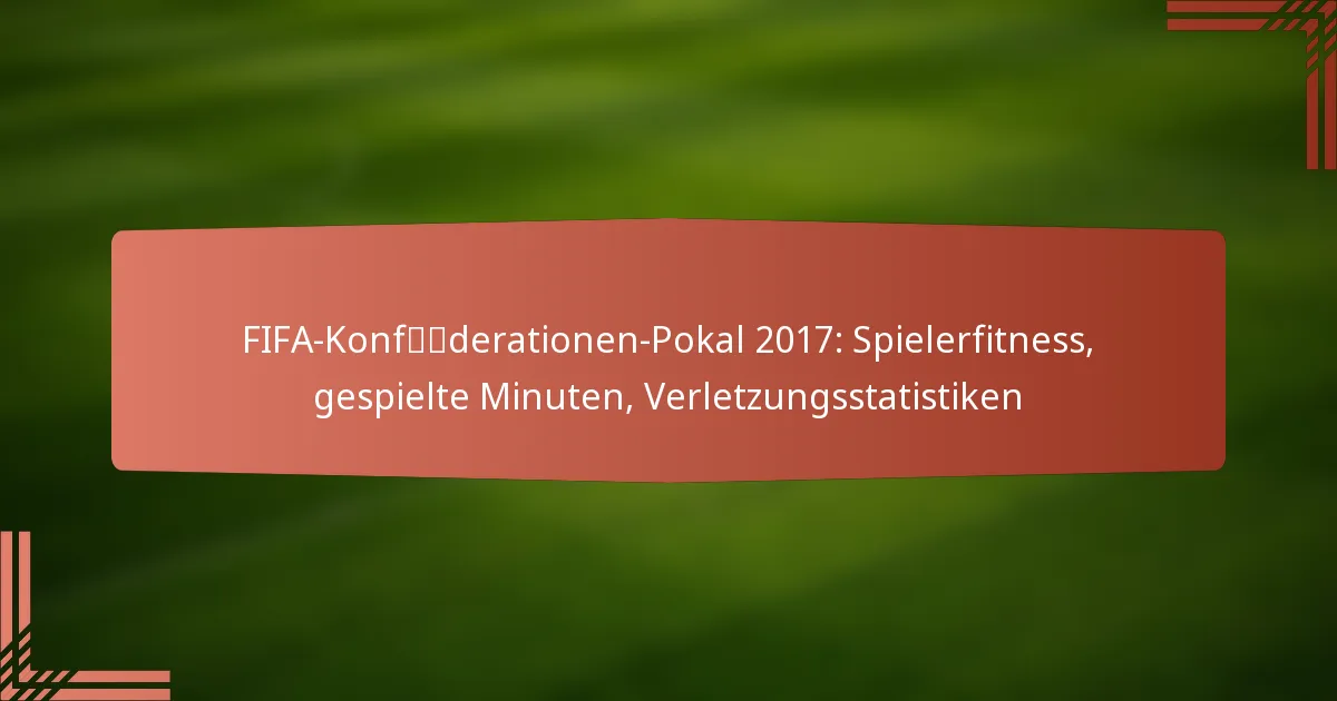 Die Fitness der Spieler ist im FIFA-Konföderationen-Pokal 2017 entscheidend, da sie direkt die Leistung, das Verletzungsrisiko und den Gesamterfolg des Teams beeinflusst. Hohe Fitnesslevels ermöglichen es den Spielern, die Intensität während der Spiele aufrechtzuerhalten, was sich auf ihre Fähigkeit auswirkt, Strategien effektiv umzusetzen.