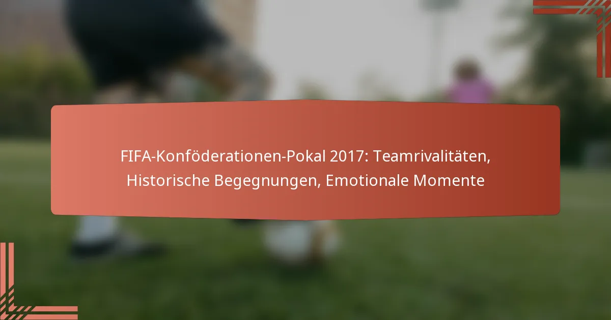 Der FIFA-Konföderationen-Pokal 2017 war eine spannende Schau intensiver Teamrivalitäten, die tief in historischen Begegnungen und früheren Weltmeisterschaftsduellen verwurzelt sind. Nationen wie Deutschland, Chile und Australien traten in denkwürdigen Duellen gegeneinander an, die nicht nur ihren Wettbewerbsgeist hervorhoben, sondern auch emotionale Momente schufen, die sowohl bei Fans als auch bei Spielern Anklang fanden.